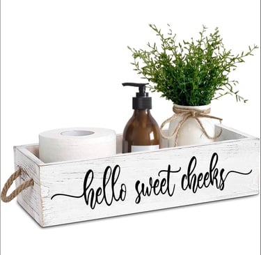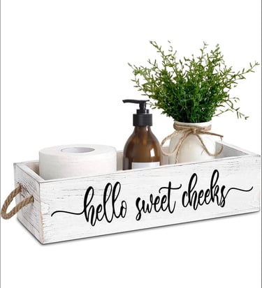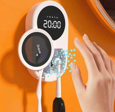 Keep your bathroom clean and sanitized with these simple items for above your toilet, shelving, ball towels for hand drying, and toothbrush sanitizer